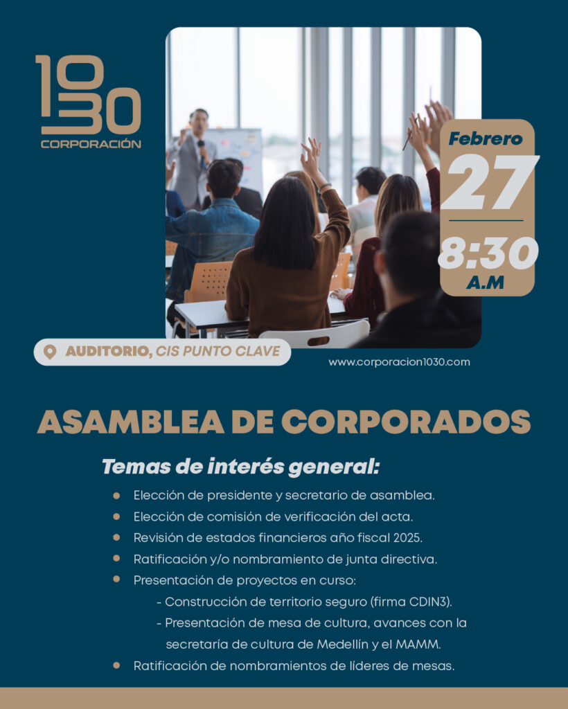 En la Corporación 10-30 creemos que las ciudades no se construyen solo con cemento, sino con visión, diálogo y decisiones inteligentes. Somos un espacio de análisis, articulación y acción que trabaja para fortalecer el desarrollo de Medellín y su área de influencia desde una mirada estratégica, social y productiva.
